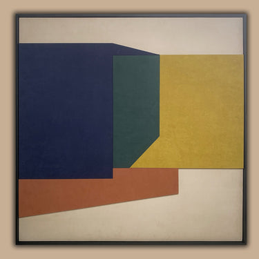أضف نقطة محورية درامية لمساحتك مع هذه اللوحة المصنوعة بتقنية الكولاج القماشي، التي تمزج بسهولة بين الألوان الهادئة، والأشكال الهندسية، والخطوط النظيفة لخلق تجربة بصرية هادئة. تضيف تقنية الكولاج القماشي طبقة من الملمس البسيط والجذاب. هذه القطعة الحديثة تحتفل بالبساطة والتوازن، داعية المشاهدين إلى رحلة تأملية في الشكل والملمس.