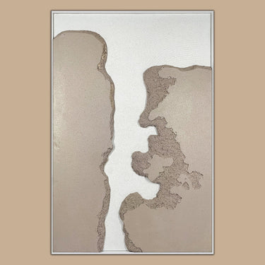 عزّز جمالك مع هذه التحفة الفنية بدون إطار. أشكال تجريدية بنقوش خشبية وحجر رملي تُضفي لمسة بصرية ديناميكية، فنّاً معاصراً آسراً بعمقه الملموس.