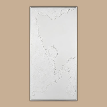 عزّز جمالك مع هذه التحفة الفنية بدون إطار. أشكال تجريدية بنسيج حرفي مميز وألواح من نسيج الحجر الرملي المتراصة تُضفي مشهدًا بصريًا ديناميكيًا، فتُنتج عملًا فنيًا معاصرًا آسرًا بعمقه الملموس.