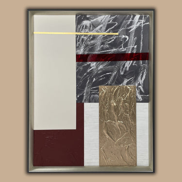 حوّل جدارًا فارغًا بهذه اللوحة التجريدية. يستخدم تصميمها العصري طحن صفائح الفولاذ المقاوم للصدأ، والجلد، والطباعة بالأكريليك، وشريط T، ورقائق الذهب لتكملة أنماط الديكور المختلفة بسهولة. مؤطرة بلون الشمبانيا لإبراز التأثير، تقدم هذه التحفة الفنية طريقة بسيطة ومميزة لتجديد المساحة.