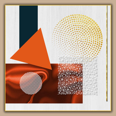 يخلق اللون الذهبي اللامع مع درجات غنية أخرى أجواءً ساحرة في هذا العمل الفني المطبوع بتقنية UV اللافت للنظر. يمزج التصميم المعاصر مع الألوان المتوهجة والعناصر المركبة بعناية ليشكل قطعة تجريدية مذهلة تكمل مجموعة واسعة من أنماط الديكور الداخلي.