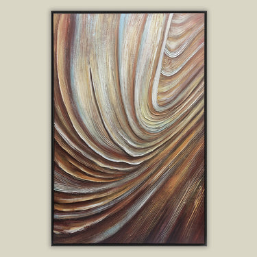 هذا العمل الفني، بمزيج آسر من الألوان المحايدة والفخامة الملموسة، يُجسّد قوة الملمس في التعبير الفني المعاصر. مُحاط بإطار أسود متباين، يبرز ببراعة على خلفية التركيبة. مثالي لتزيين أي جدار فارغ، يُضفي هذا العمل الفني لمسةً جريئةً ومؤثرة.