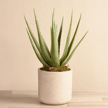 نبتة الألوفيرا الصناعية من بلومر، التي تتميز بتصميمها اللافت للأنظار برغم بساطته. تأتيك هذه النبتة في أصيص سيراميكي يمتزج لونه الهادئ مع أوراق الألوفيرا الحريرية الزاهية لتصبح لديك قطعة فنية بديعة مثالية للديكورات العصرية.