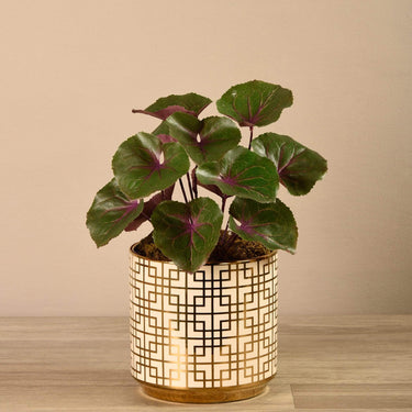 المعروف أيضًا باسم نبات الفهد ، لن تذبل هذه الرابطة الاصطناعية النابضة بالحياة أو تغير بقعها أبدًا. أوراقها الخضراء والحمراء اللامعة تنبثق حقًا ضد القدر المنقوش باللون الكريمي والذهبي.