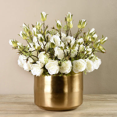 تشكيلة ورود صناعية في مزهرية ذهبية