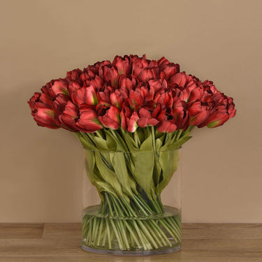 تشكيلة توليب صناعي في مزهرية زجاجية